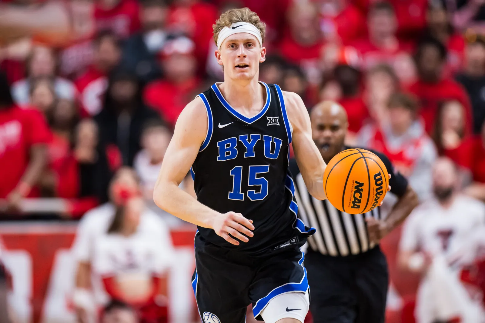 BYU dug a deep hole in the first half and its rally fell short in a 90-82 loss at then-No. 14 Kansas on Saturday. Richie Saunders finished with 33 points and 10 rebounds in the loss while Robert Wright III posted 18 points and six assists and freshman AJ Dybantsa added 17 points. The Cougars trailed by 20 at the break, getting back to within four with 1:27 left before the Jayhawks iced the game, dropping BYU to 5-3 in Big 12 Conference play.